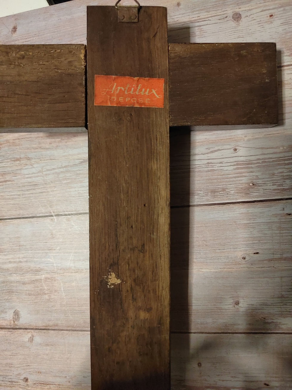 Crucifix mural ancien Antilux en bois massif et Christ doré